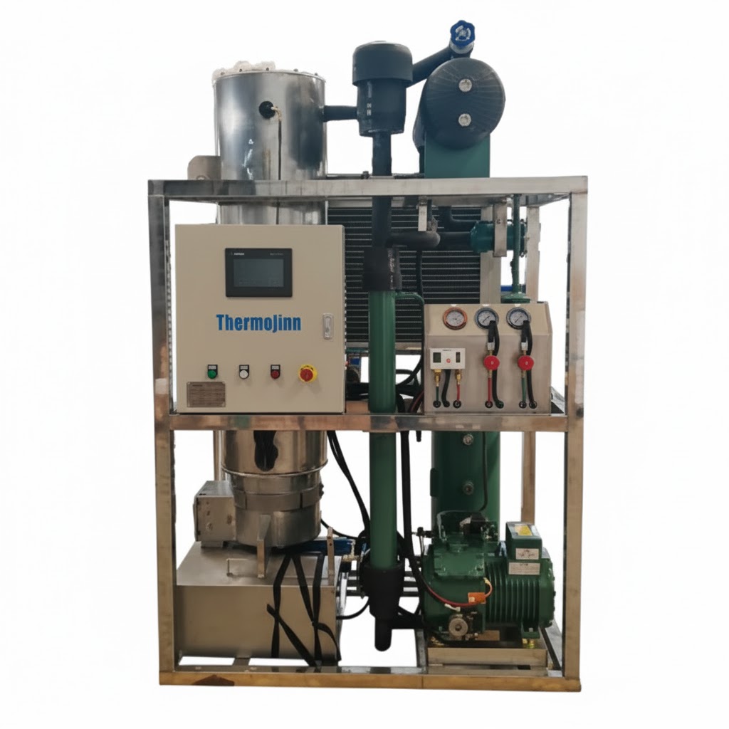 Thermojinn Tube Ice machine, which can make high quality Tube Ice for you. Tube ice is a kind of regular hollow cylindrical transparent Ice, compared with other kinds of Ice, tube Ice has the highest density which is pure, has good air permeability and long storage life. Mainly used for human daily life, such as drinks freezing, wines mixing, food preservation, cold compress, and also used for food &aquatic products processing, poultry slaughtering, meat processing and other industries.